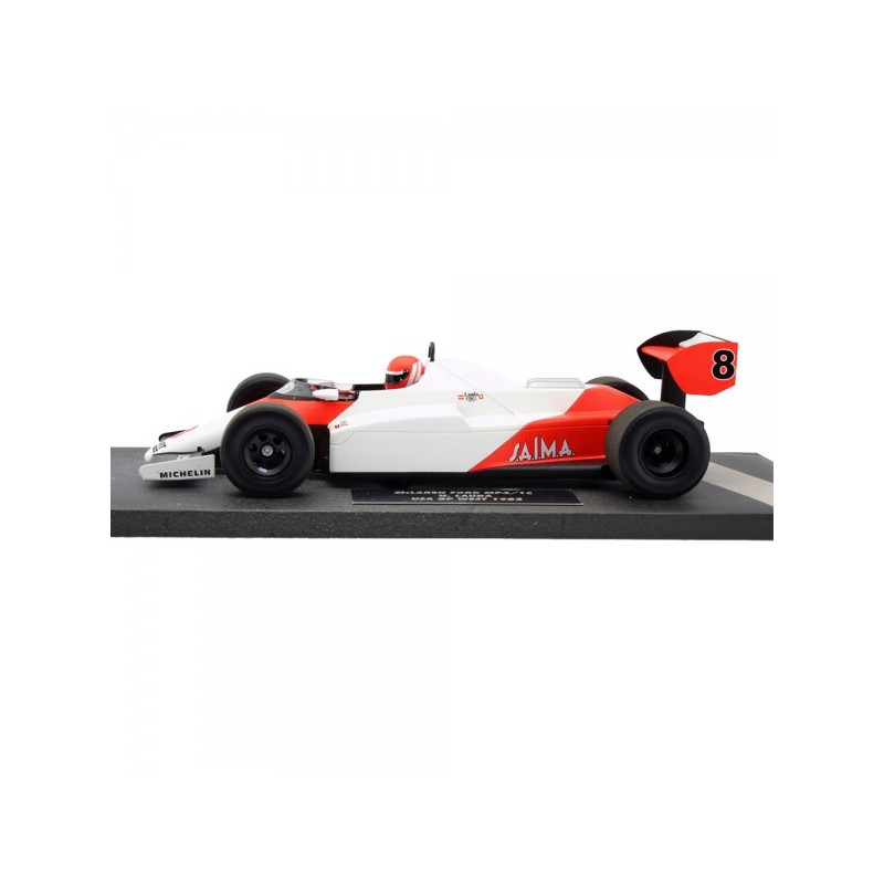 Miniature model in scale 1/18 by Niki Lauda´s McLaren MP4/1C #8. With this car he became second at the USA West GP of Formula 1 in 1983.