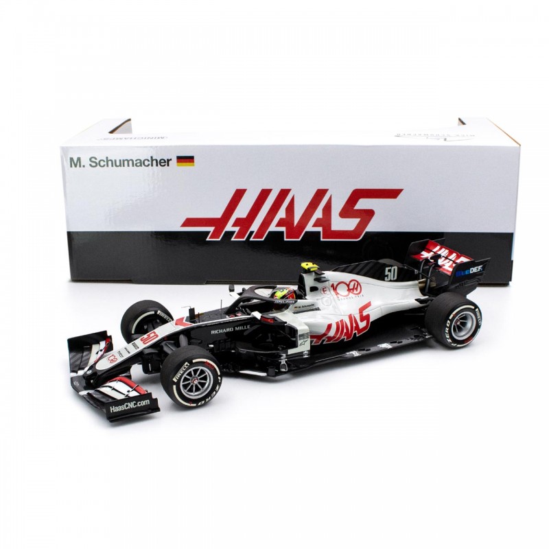 This miniature vehicle, produced by the manufacturer Minichamps, faithfully reflects the original. The model is strictly limited to 500 pieces and comes in exclusive Mick Schumacher packaging.